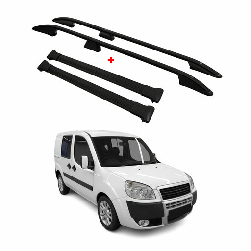 Dachreling + Dachträger SET für Fiat Doblo 2000-2010 Kurzer Aluminium Schwarz 4x