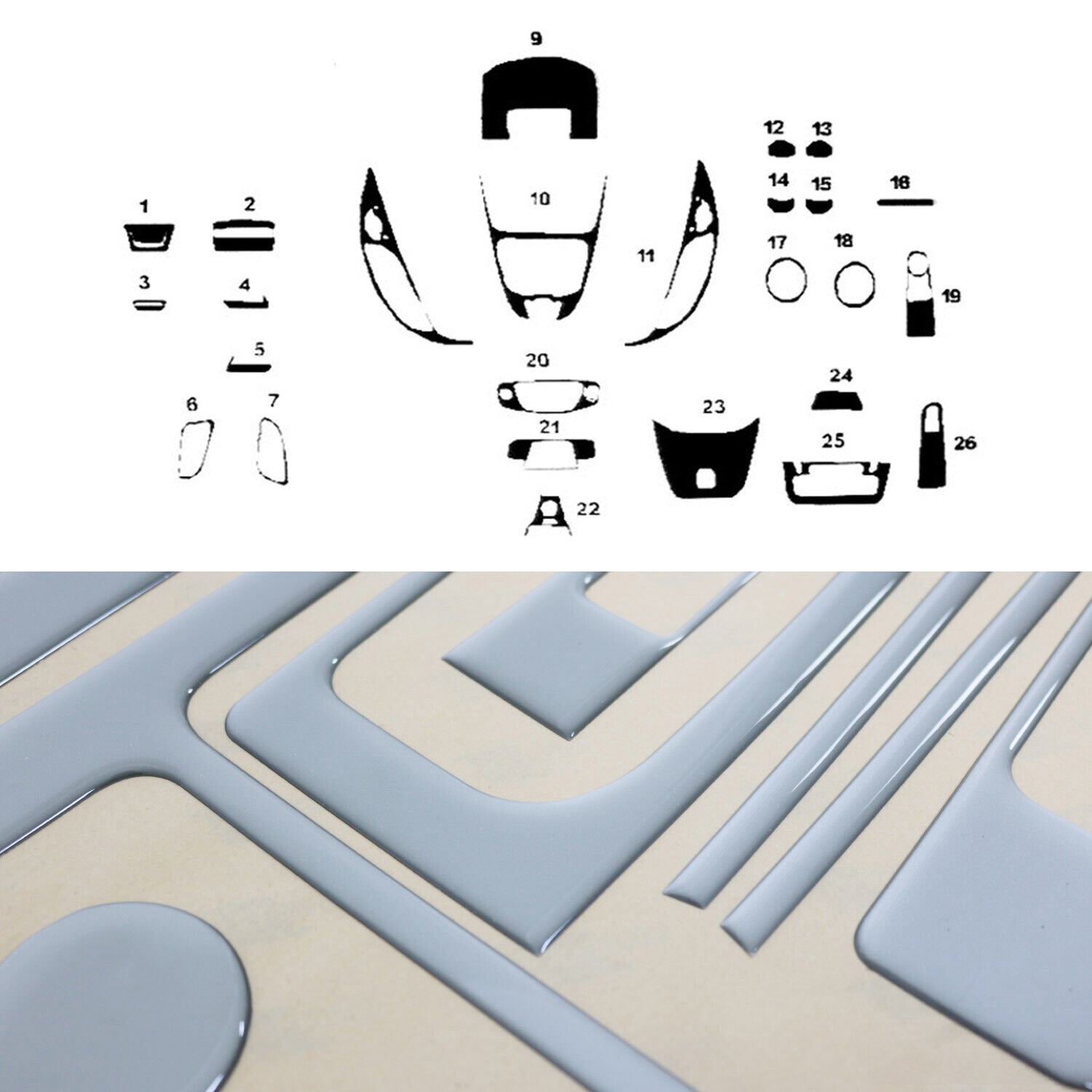 Verleihen Sie dem Innenraum Ihres Ford Tourneo Courier 2014–2018 mit diesem 26-teiligen Dekor-Set in Aluminium-Optik einen modernen Look. So wird das Cockpit nicht nur optisch aufgewertet, sondern auch vor alltäglichen Gebrauchsspuren geschützt – ideal für Vielfahrer und Familien.