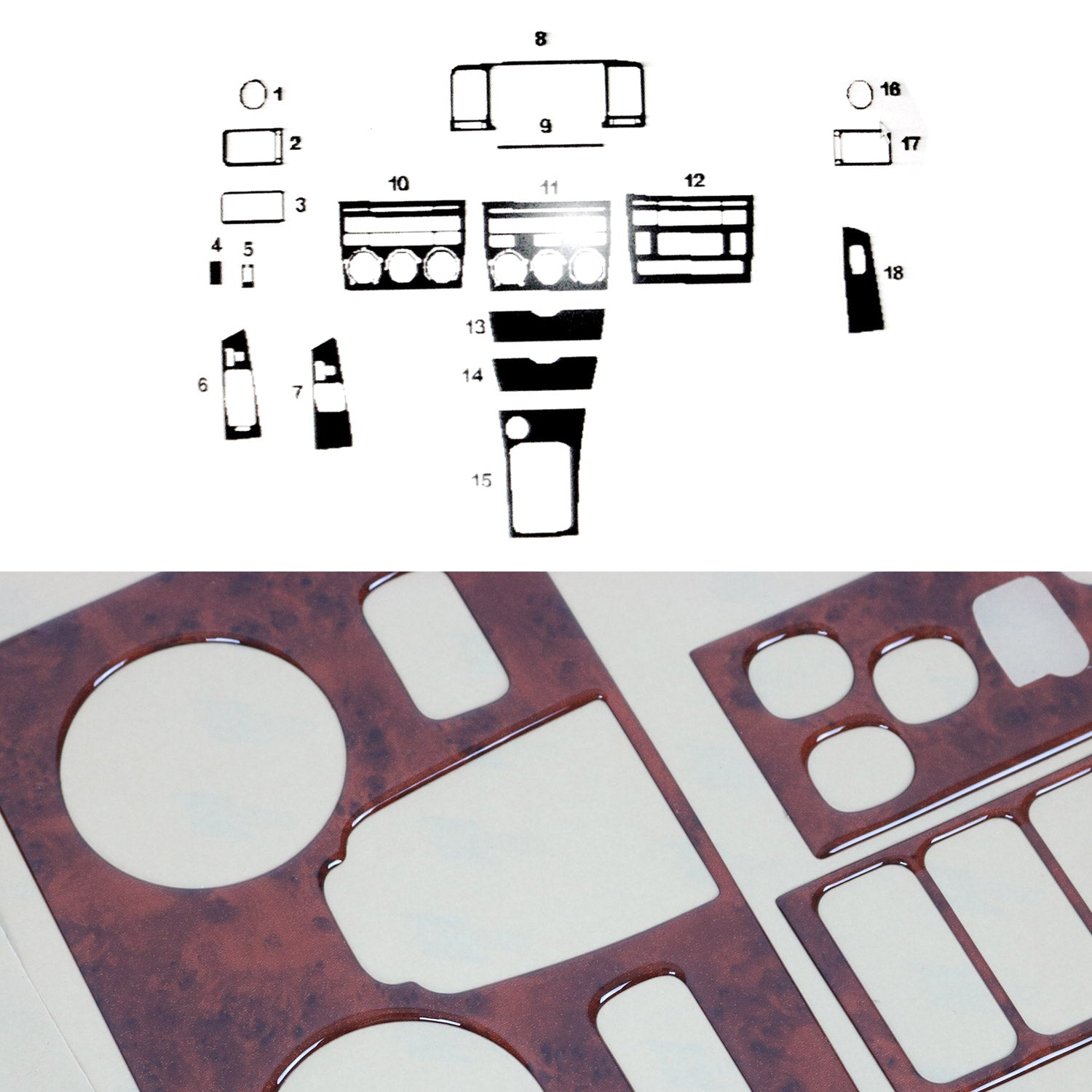 Innenraum Dekor Cockpit für Toyota Corolla 2002-2007 Wurzelholz Optik 18tlg