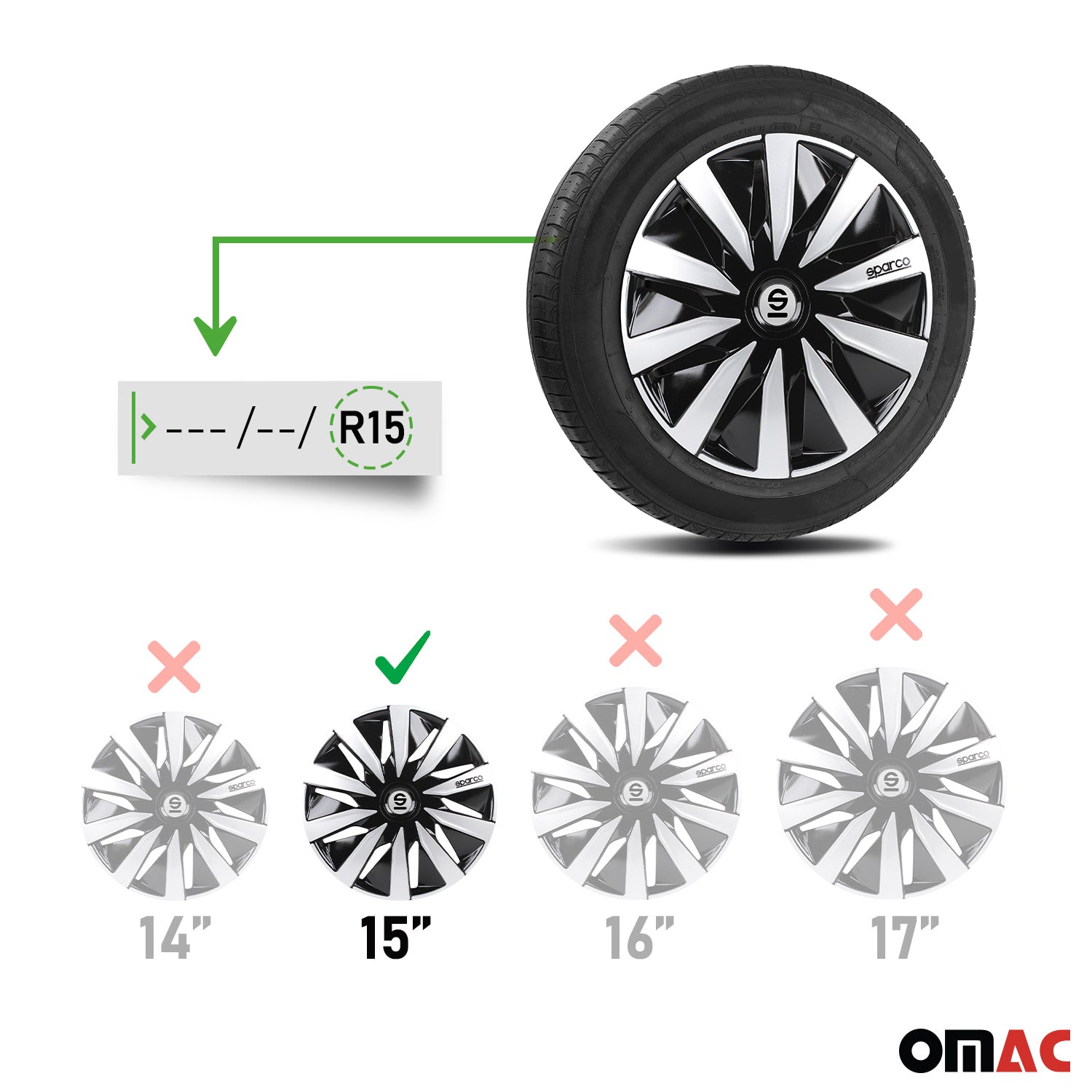 Radkappen Radzierblenden Sparco Lazio 15" Zoll Abdeckung Set Schwarz Silber 4x
